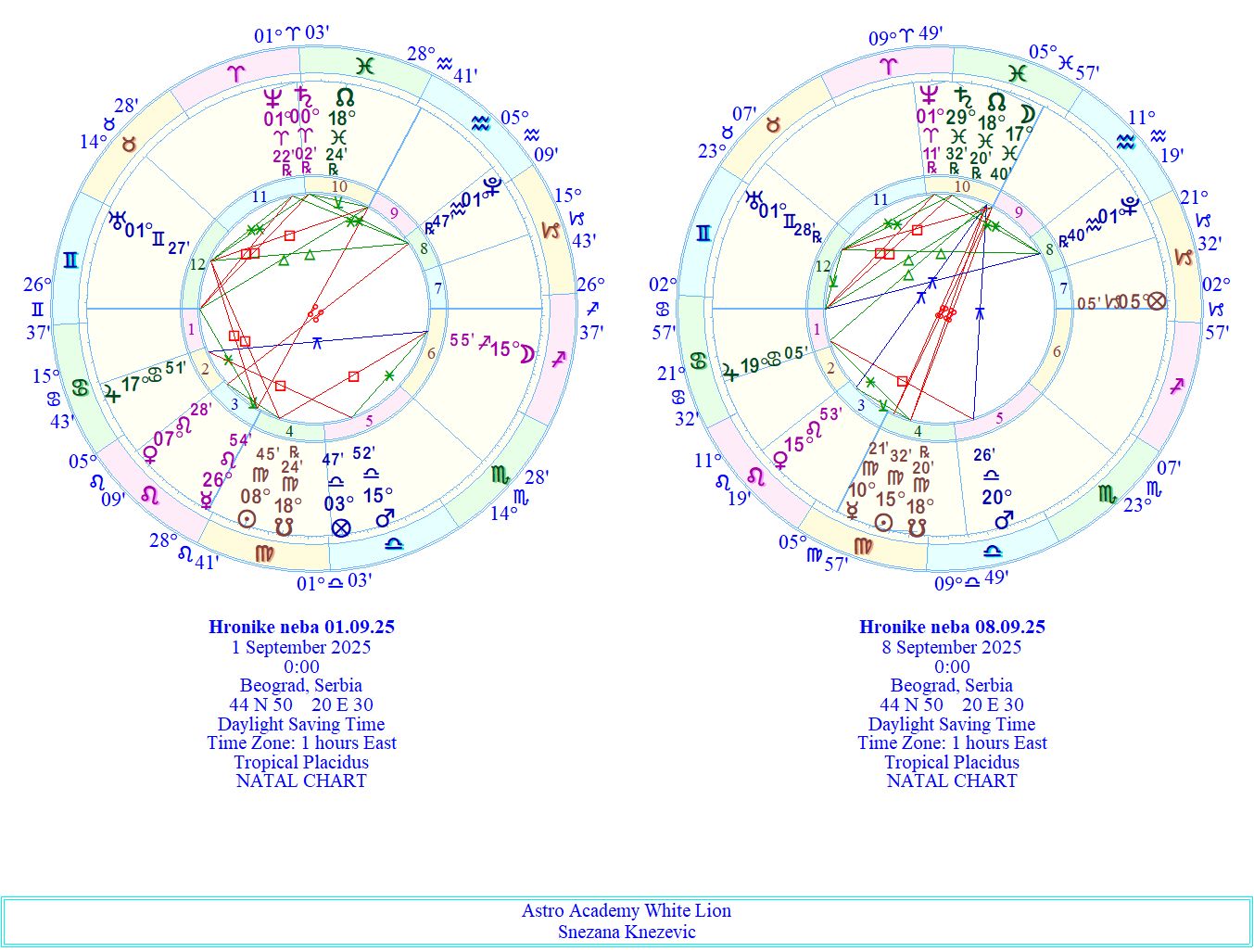 Sreda nam donosi dva izazovna aspekta koji u sebi nose tenziju, nemir i osećaj da moramo da branimo svoje stavove. Ovo je dan kada se lako upada u rasprave, kada reči mogu biti oštre, a reakcije nagle. Ujutru Merkur pravi kvadrat sa Uranom u Blizancima. To je aspekt brzih misli, neočekivanih informacija i iznenadnih obrta u razgovorima. U ovakvoj atmosferi lako može doći do nesporazuma, previše direktnih reči ili impulsivnih odluka. Um može biti prepun ideja, ali i nestrpljiv da ih odmah sprovede. Savet je da zastanemo i oslušnemo — možda nam se nudi nova inspiracija, ali ako prenaglimo, možemo poremetiti tok događaja. Kasnije tokom dana Mesec u Jarcu pravi kvadrat sa Marsom u Vagi. Ovaj aspekt donosi sukob između potrebe za redom, disciplinom i pravilima (Mesec u Jarcu) i želje da postignemo ravnotežu i da zadovoljimo odnose (Mars u Vagi). To može izgledati kao unutrašnja borba: da li da se držimo pravila i svojih granica ili da popustimo zarad mira. Napetost se može preneti i na odnose sa autoritetima ili partnerima, pa je važno da budemo svesni da tvrdoglavost ovog dana lako vodi u sukob. Ova sreda nas uči da je hrabrost ponekad u tome da se smirimo, da pustimo da prođe prvi talas tenzije i da onda donesemo odluku. Ako uspemo da kanališemo energiju ovih kvadrata, možemo dobiti snagu da se borimo za svoje ideje, ali na način koji gradi, a ne razara.