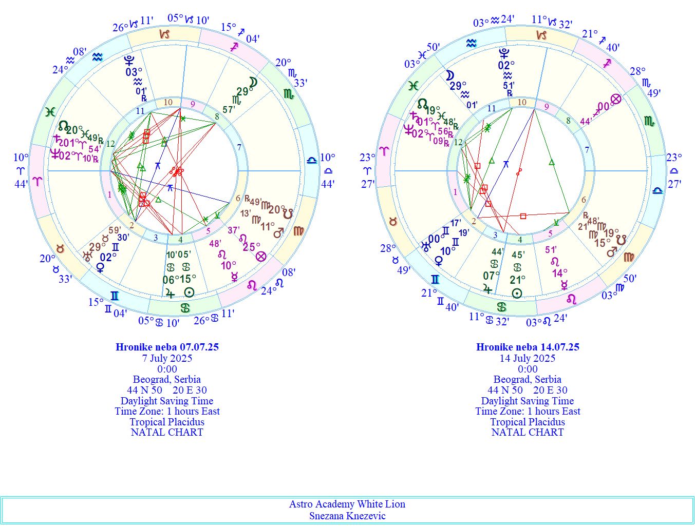 Na ličnom planu, osećamo potrebu da izgovorimo ono što smo dugo potiskivali, da usvojimo nove poglede, da istražimo nove oblasti i proširimo svoju mentalnu mapu sveta. Oslobađamo se starih rečenica koje smo godinama ponavljali u sebi i otvaramo prostor za drugačiju priču o životu. I sve se dešava brzo, intenzivno, bez prethodne najave – ali ta iznenadna energija nosi mogućnost unutrašnje slobode koju smo možda dugo čekali. Oni koji imaju naglašenog Urana u natalu, koji osećaju vibracije kolektivnih promena i često idu ispred vremena, posebno će snažno doživeti ovaj tranzit. A svi mi, na ovaj ili onaj način, pozvani smo da uskladimo svoj um sa novim vremenom. Promenljivi znaci nalaze se u epicentru promene, a svi koji su spremni da uče, da se otvore i da oslušnu svoj unutrašnji glas, mogu sada napraviti iskorak koji menja tok njihove lične priče. U nedelji pred nama, slušajte pažljivo svet oko sebe. Iza svake misli, reči ili susreta može se kriti nova ideja, novi pogled, nova sloboda!