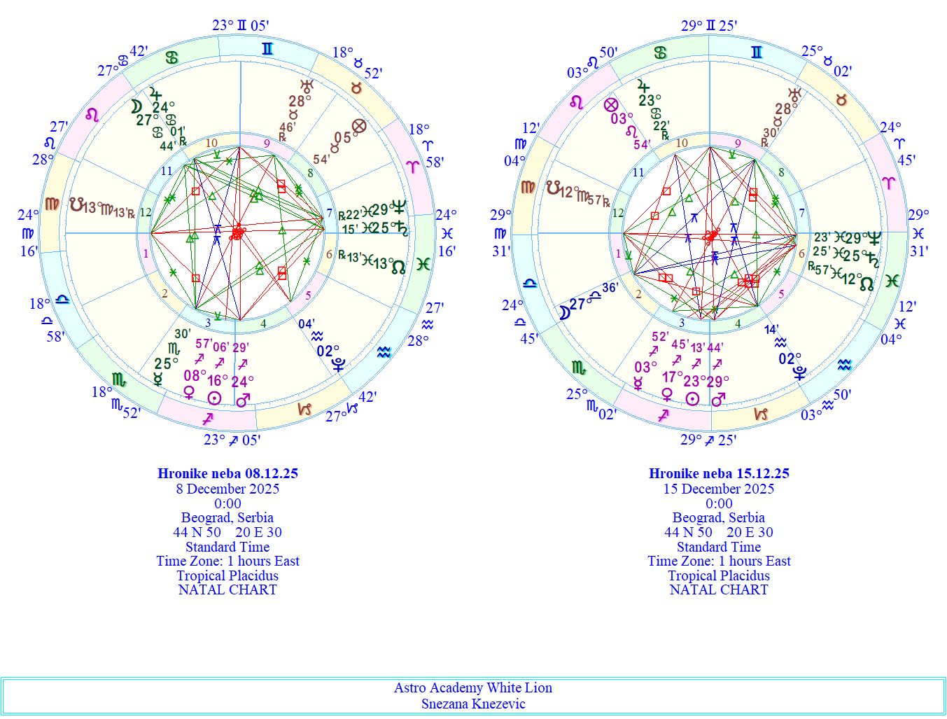 Sreda donosi potpuno drugačiji ritam. Nakon vatrenih i intenzivnih dana, Mesec prelazi u znak Device, prizemljujući energiju i usmeravajući nas na praktične stvari: rutinu, organizaciju, zdravlje, red i jednostavnost. Ovo je početak dana kada telo vodi — gde jasno osećamo šta treba dovesti u balans, urediti ili pročistiti. Ali ispod te spoljašnje smirenosti odvija se veliki, istorijski trenutak na nebu. Neptun kreće direktno sa 29° Riba — poslednji dah mora pre ulaska u vatru! Ovaj tranzit je mnogo dublji nego što deluje. Neptun se budi sa samog kraja svog znaka — 29. stepen je stepen završetka, raspuštanja, rastvaranja i prelaza. Ovo je njegovo poslednje direktno kretanje u Ribama u našem životu. Zašto je ovo važno? Neptun je u svom znaku Riba boravio od 2011. godine i zaokružio čitav jedan ciklus duhovnosti, kolektivne osetljivosti, umetnosti, empatije, snova, iluzija, bega, ali i dubokog unutrašnjeg preobražaja. Sada, kada kreće direktno, oseća se talas jasnije intuicije, povratak vere, otvaranje unutrašnjeg kompasa. Kao da se magla polako podiže, ali ne naglo — već nežno, kao jutro posle duge noći. Neptun 26.01.2026. prelazi u znak Ovna, prvi znak Zodijaka, gde počinje potpuno novo poglavlje — prelaz iz vode u vatru, iz pasivnog u aktivno, iz snova u akciju. I ono najvažnije: neće se ponovo vratiti u znak Ribe sve do 2176. godine. Dakle, ovo je zaista poslednji put u našim životima da osećamo Neptuna u ovoj vibraciji: mekoj, intuitivnoj, mističnoj, okeanskoj. Sada završavamo jednu epohu i spremamo se za novu. Sreda nas poziva da zastanemo, da osetimo, da oprostimo, da otpustimo ono što se rastapa, jer nešto sasvim novo počinje da se rađa u udaljenoj svetlosti pred nama. Kako Sunce zalazi, mentalna energija se ubrzava. Merkur u Škorpionu pravi opoziciju sa Uranom u Biku, donoseći iznenadne vesti, neočekivane razgovore, mentalne preokrete, nagle uvide, istine koje izbijaju na površinu. Ovaj aspekt otvara istinu, ali bez filtera. Moguće su nervoza, ubrzane misli, impulsivne poruke, ali i oslobađajući razgovori koji donose tačku na neku situaciju. Završi ono što je staro u tišini, jer novo stiže već sa prvim svetlom intuicije.