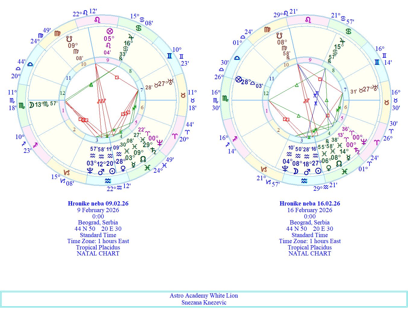 Ponedeljak, 09.02, otvara ovu nedelju snažnim emotivnim nabojem. Mesec u Škorpionu produbljuje osećaje, izvlači istinu ispod površine i ne ostavlja prostora za površnost. Njegova povezanost sa Jupiterom u Raku donosi mogućnost unutrašnjeg širenja, razumevanja i emotivne podrške – ali istovremeni dodir sa Marsom u Vodoliji unosi napetost između onoga što osećamo duboko u sebi i potrebe da se oslobodimo, prekinemo ili reagujemo naglo. Ovo je dan u kojem se emocija, instinkt i potreba za slobodom sudaraju, ali upravo iz tog sudara može nastati nova jasnoća. Ne ona koja se nameće, već ona koja se rađa iz suočavanja.
