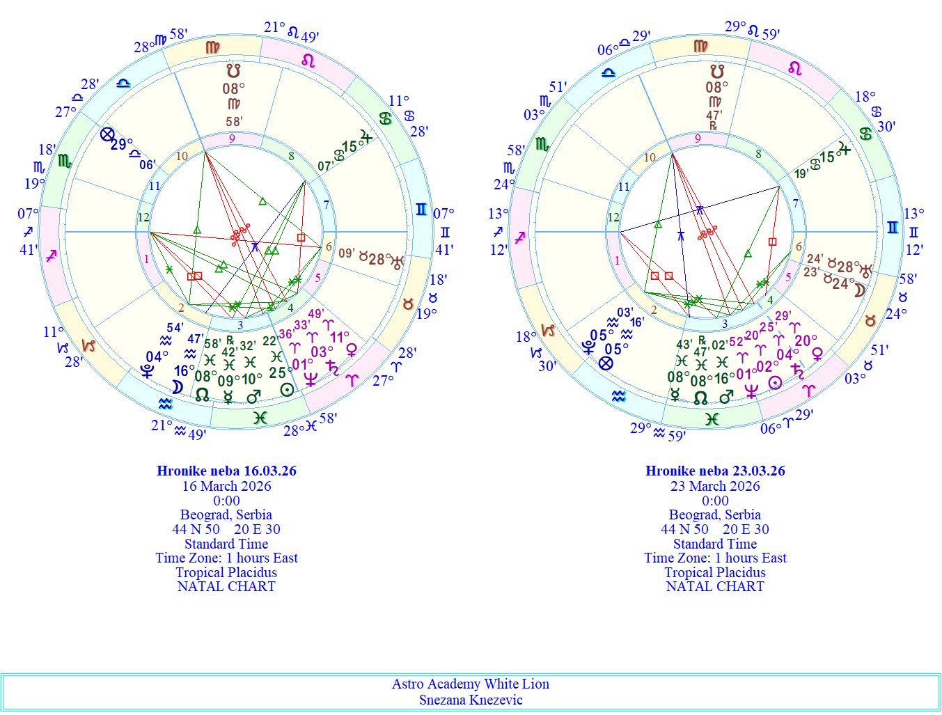 Nedelja ponovo podiže energiju, ali na mnogo inspirativniji način. Mars i Jupiter grade lep vodeni trigon i otvaraju snažan tok unutrašnje motivacije i vere. Kada se ove dve planete povežu kroz harmoničan aspekt, javlja se osećaj da nas nešto pokreće iznutra. Mars donosi akciju i volju, dok Jupiter donosi širinu, optimizam i veru u uspeh. U vodenim znacima ova energija dolazi iz emocije i intuicije, pa možemo osetiti snažan poriv da uradimo nešto što ima dublji smisao. Ovo je aspekt hrabre inspiracije – trenutak kada osećamo da možemo više nego što smo mislili i kada nas unutrašnja sigurnost vodi napred. Istovremeno, Sunce u Ovnu dolazi u konjunkciju sa Neptunom i donosi suptilniju, gotovo mističnu notu ovom danu. Ovaj aspekt otvara prostor za snove, inspiraciju, umetnost i duhovne uvide. Sunce daje svetlost i svest, dok Neptun rastvara granice i podseća nas na dimenziju života koja nije uvek vidljiva očima. U Ovnu ova energija može probuditi idealizam, viziju i želju da sledimo nešto što nas duboko inspiriše. Međutim, Neptun uvek traži svesnost. Dok može doneti veliku inspiraciju, može doneti i zanos ili idealizaciju. Zato je važno ostati povezan sa realnošću i ne donositi nagle odluke pod uticajem trenutne emocije. Ako uspemo da spojimo Marsovu akciju, Jupiterovu veru i Neptunovu viziju, ova nedelja može završiti sa osećajem da smo pronašli novi pravac. Tako se ciklus koji je započeo završetkom u Ribama i ulaskom Sunca u Ovna završava energijom inspiracije i pokreta. Kao da nas univerzum podseća da pravi početak ne dolazi samo iz snage, već i iz vere u ono što osećamo da je naš put. Srećno!