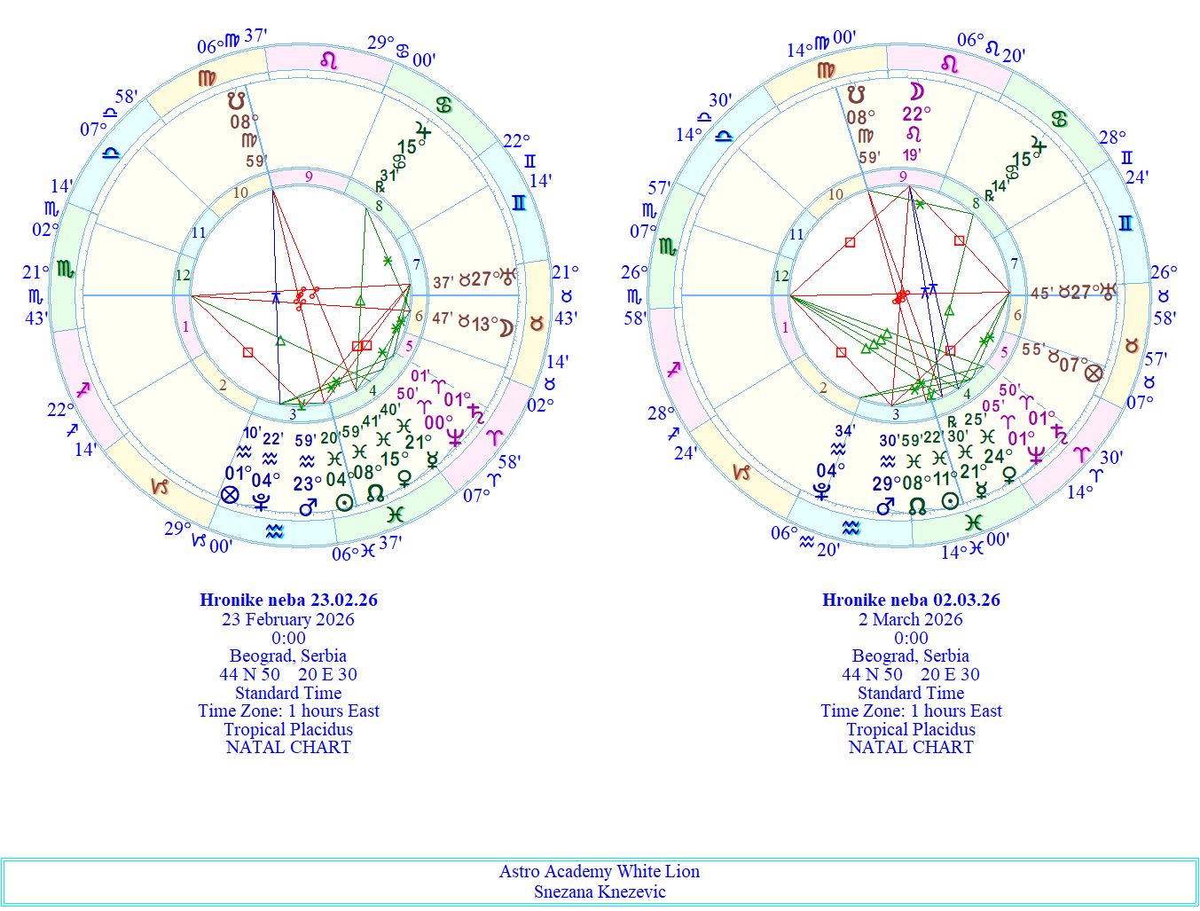 Subota započinje u vrlo nežnoj, gotovo filmskoj atmosferi. Konjunkcija Venere i Merkura u Ribama otvara prostor emotivne i misaone suptilnosti. Misli postaju obojene osećanjima, reči mekše, a komunikacija nosi ton razumevanja, romantike i intuicije. Ovo je energija u kojoj se više oseća nego što se analizira, u kojoj pogled, ton ili tišina govore jednako snažno kao i izgovorene rečenice. U Ribama, Venera i Merkur zajedno stvaraju prostor u kojem ljubav i misao teže spajanju. Razgovori mogu biti puni empatije, inspiracije, nežnosti. Ovo je dan koji lako budi kreativnost, maštu, potrebu za lepotom i unutrašnjim povezivanjem. Granice između racionalnog i emotivnog sveta postaju tanje, pa možemo lakše izraziti ono što inače ostaje skriveno. Kako dan odmiče, Mesec prelazi u znak Lava i energija menja boju. Posle tihe, vodene introspekcije, javlja se potreba za izražavanjem, toplinom, vidljivošću. Lav budi srce, lični ponos, potrebu da budemo primećeni i autentični u svom sjaju. Emocije sada žele da se pokažu, da dobiju formu, gest, pokret. Trigoni Meseca sa Saturnom i Neptunom donose zanimljiv spoj stabilnosti i inspiracije. Postoji mogućnost da se snovi i realnost na trenutak usklade, da unutrašnja vizija dobije strukturu, a osećanja jasnoću. Ovo je aspekt koji može doneti osećaj unutrašnje zrelosti, tihe sigurnosti i dubljeg razumevanja sopstvenih emocija. Ipak, opozicija sa Plutonom unosi dubinu i intenzitet koji ne dozvoljava površnost. Nešto može biti pokrenuto na snažnijem, psihološkom nivou. Susreti, reakcije ili unutrašnja stanja mogu dodirnuti teme kontrole, moći, ranjivosti ili potisnutih osećanja. Pluton ne traži dramu — već istinu. On osvetljava ono što je skriveno ispod slike koju prikazujemo svetu. Subota zato nosi zanimljiv energetski luk — od snene nežnosti, preko srčane topline, do dubokih unutrašnjih uvida. Dan u kojem emocije mogu biti i lepe i snažne, i inspirativne i transformišuće.