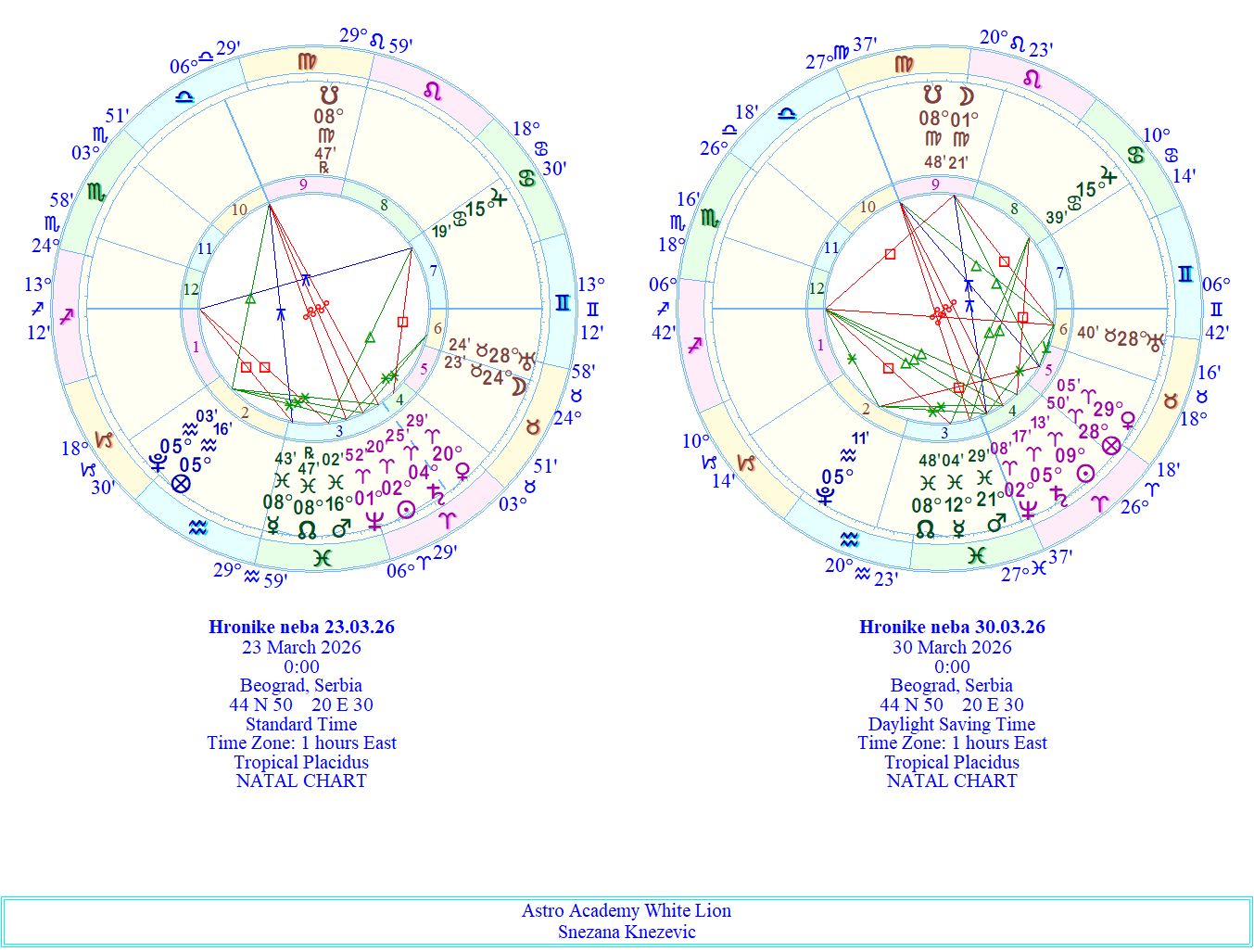 Sreda donosi najznačajniji energetski trenutak ove nedelje. Mesec prelazi u svoj znak Raka i odmah se otvara tema doma, porodice i emotivne sigurnosti. Kada je Mesec u Raku, naše potrebe za bliskošću, zaštitom i pripadanjem postaju naglašenije. Intuicija je snažnija, ali i osetljivost na spoljašnje događaje može biti veća. Tokom dana Mesec formira kvadrate sa Neptunom, Saturnom i Suncem u Ovnu. Ovi aspekti mogu doneti unutrašnju napetost između emocija i realnosti. Neptun može uneti konfuziju ili idealizaciju, Saturn donosi osećaj odgovornosti i težine, dok Sunce u Ovnu pokreće potrebu za akcijom i jasnim pravcem. Kao da jedan deo nas želi sigurnost i zaštitu, dok drugi deo želi pokret i odlučnost. Ipak, ono što ovu sredu čini posebno značajnom jeste egzaktna konjunkcija Sunca i Saturna u znaku Ovna. Ovaj susret predstavlja snažan simbolički trenutak u kome se sudaraju princip svetlosti i princip strukture, volje i ograničenja. Sunce u Ovnu nosi snažnu energiju početka, hrabrosti i inicijative, dok Saturn donosi test zrelosti, discipline i odgovornosti. U Ovnu, Saturn se nalazi u znaku svog pada, pa ovaj aspekt može doneti osećaj pritiska, suočavanje sa realnošću ili potrebu da se neki planovi ozbiljno preispitaju. Ali upravo u takvim trenucima često se donose najvažnije odluke. Saturn traži stabilan temelj, a Sunce daje snagu da taj temelj počnemo da gradimo. Na kraju dana Sunce formira i harmoničan sekstil sa Plutonom u Vodoliji, što donosi dodatnu dubinu i snagu transformacije. Pluton pomaže da se odluke koje donosimo ne zadrže samo na nivou ideje, već da pokrenu stvarnu promenu. Zbog toga sreda može biti dan važnih poslovnih ili životnih odluka. Moguće je da osetimo potrebu da pokrenemo nove projekte, da preuzmemo odgovornost za neku ideju ili da postavimo temelje za nešto što će se razvijati u narednom periodu. Energija ovog dana traži ozbiljnost, ali istovremeno daje i snagu da napravimo prvi korak ka novom početku!