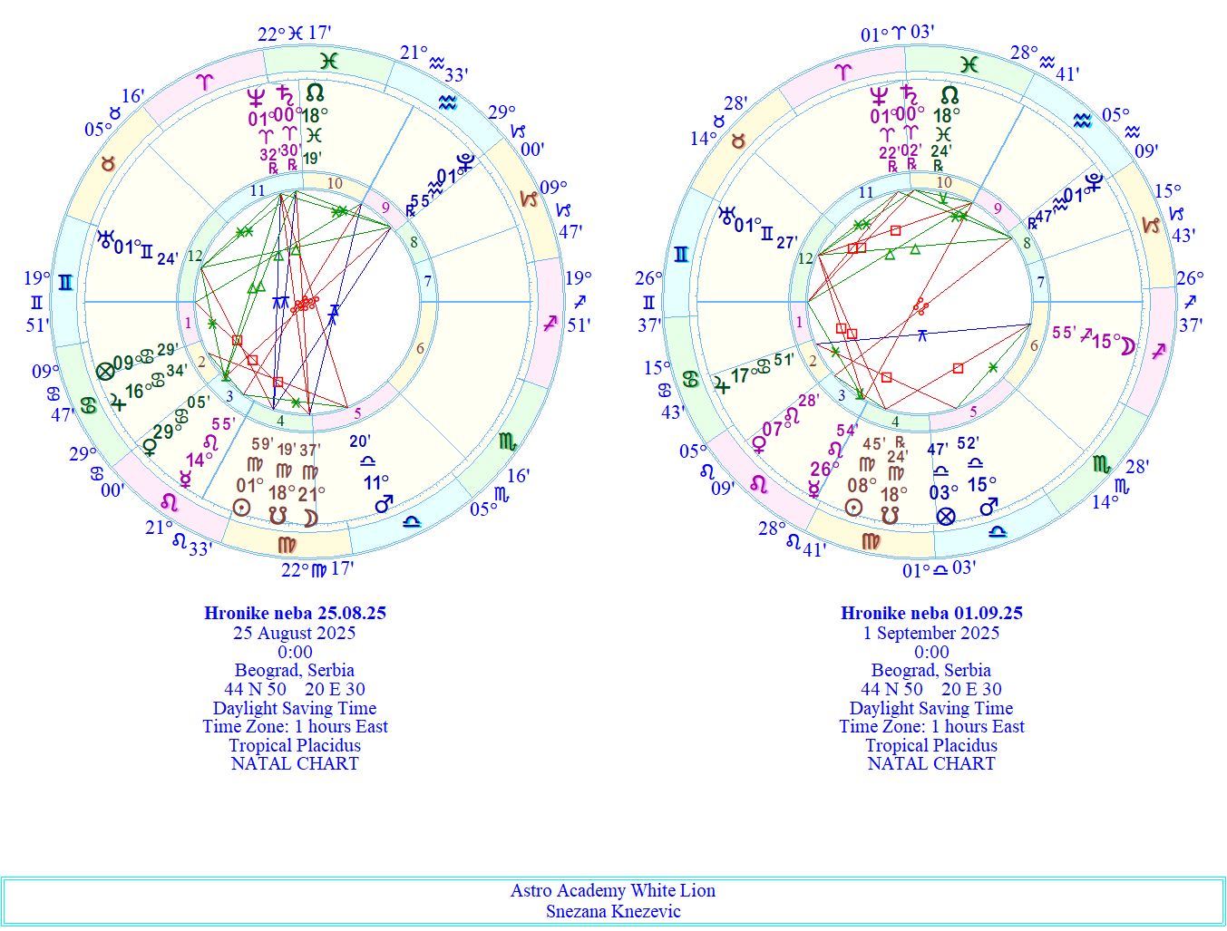 Ipak, glavni ton dana donosi Venera. Ona sada gradi trigon sa Neptunom u Ovnu, a istovremeno opoziciju sa Plutonom u Vodoliji. Ovo je kosmički ples ljubavi, iluzija i moći. Trigon sa Neptunom unosi dašak čarolije – romantiku, inspiraciju i mogućnost da na trenutak dodirnemo snove. Ljubav može izgledati kao bajka, a emocije poput pesme koja nas obavija. Ali opozicija sa Plutonom upozorava da svaka bajka ima i svoju senku. Strasti mogu postati opsesivne, emocije previše snažne, a odnosi zahtevati transformaciju. Sreda nas uči da prava ljubav i prava lepota nikada ne dolaze iz igre moći ili kontrole. Ako pokušamo da nešto silom zadržimo, izmaknuće nam. Ako pak pustimo i dopustimo da se stvari dogode prirodno, otkrićemo da snovi mogu postati stvarnost.